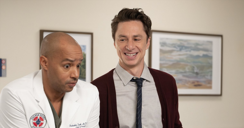 L’excellente nouvelle de ce revival est qu’il voit le retour de Zach Braff, Sarah Chalke et Donald Faison dans leurs rôles respectifs de JD, Elliot et Turk. La distribution, judicieusement composée d’acteurs récurrents et invités, comprend également de très nombreux visages familiers de cette époque. Les nostalgiques seront ravis d’y croiser Judy Reyes (Carla), John C. McGinley (Dr Cox), Neil Flynn (le concierge), Robert Maschio (Todd) ou encore Christa Miller (Jordan).